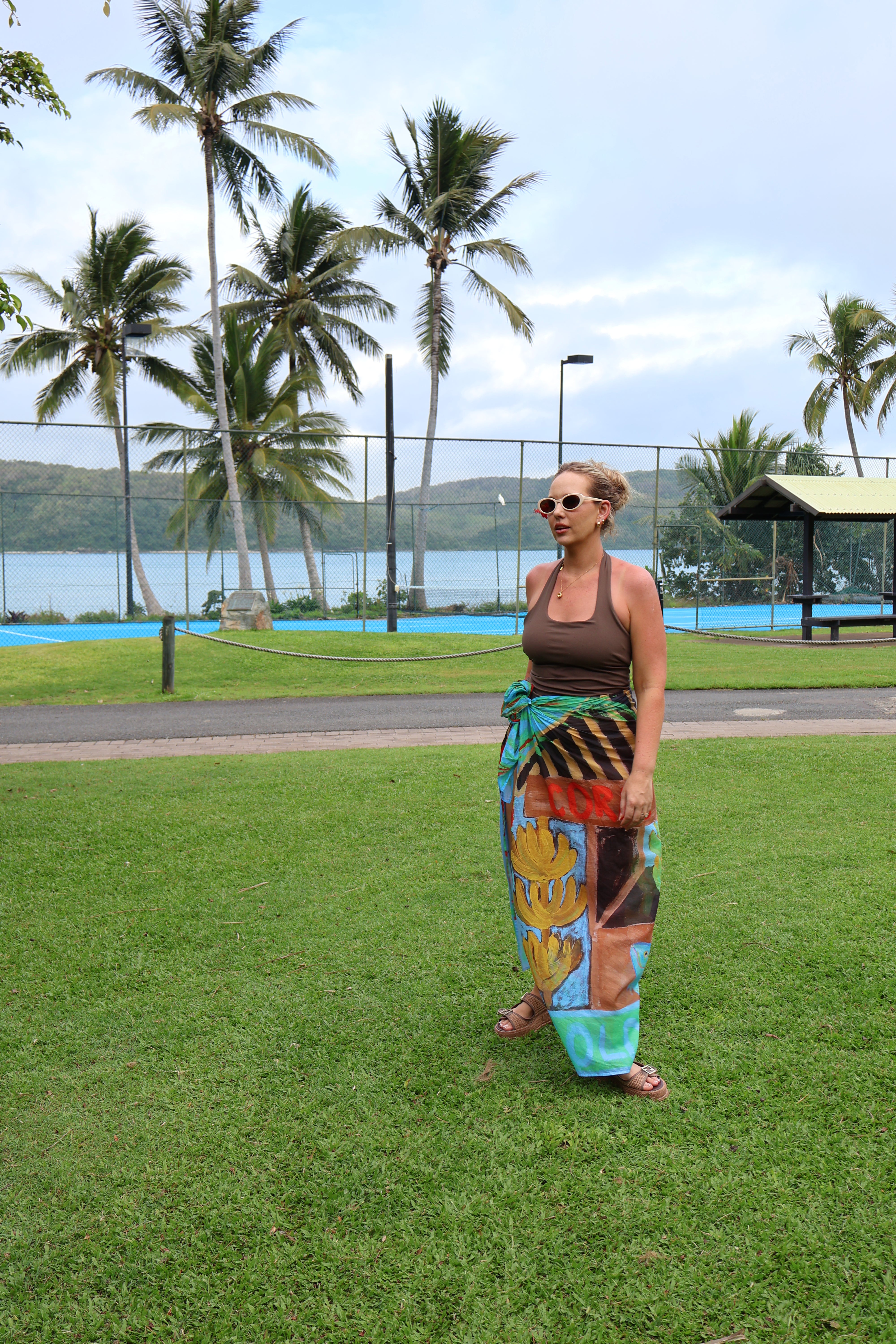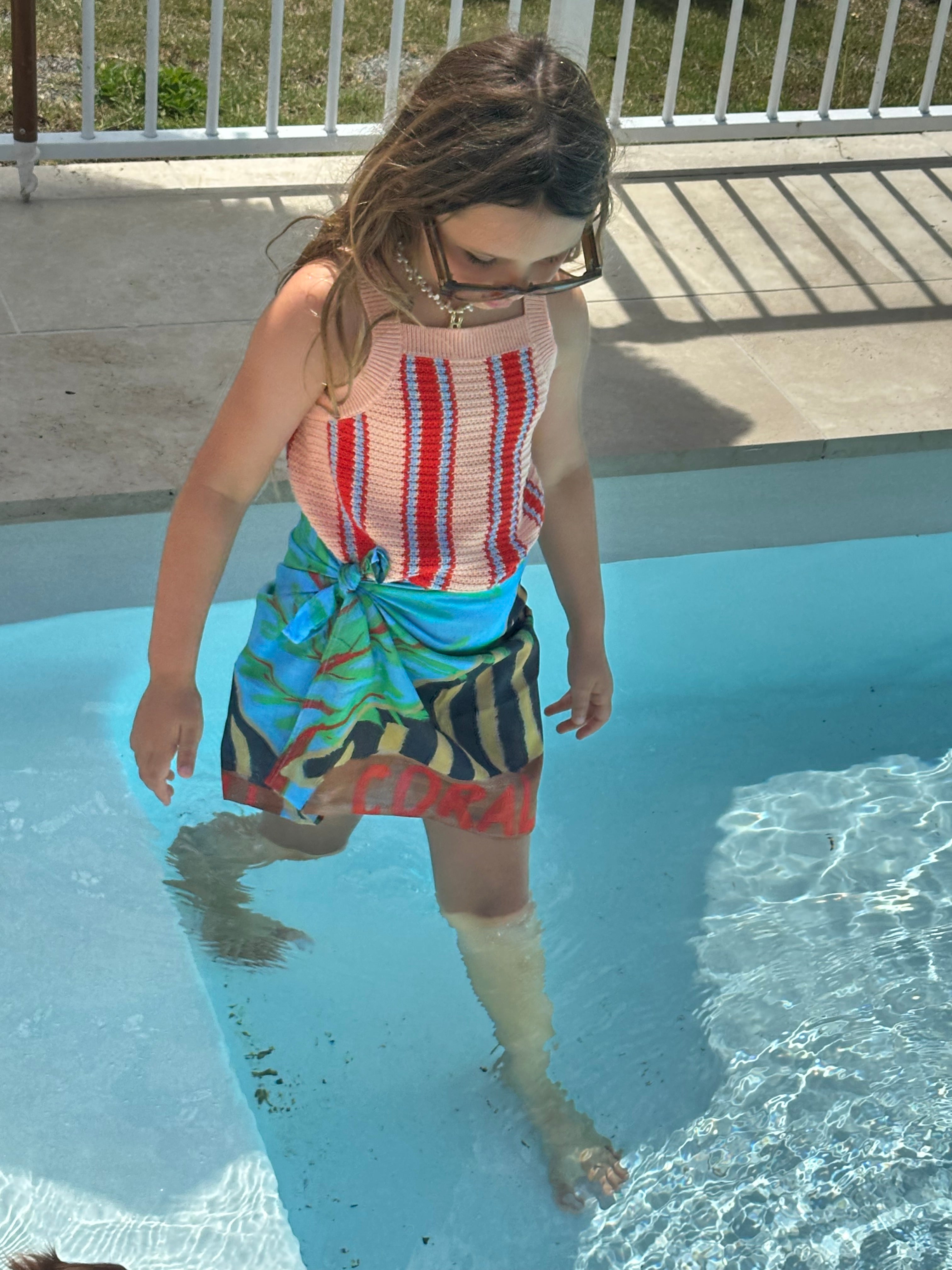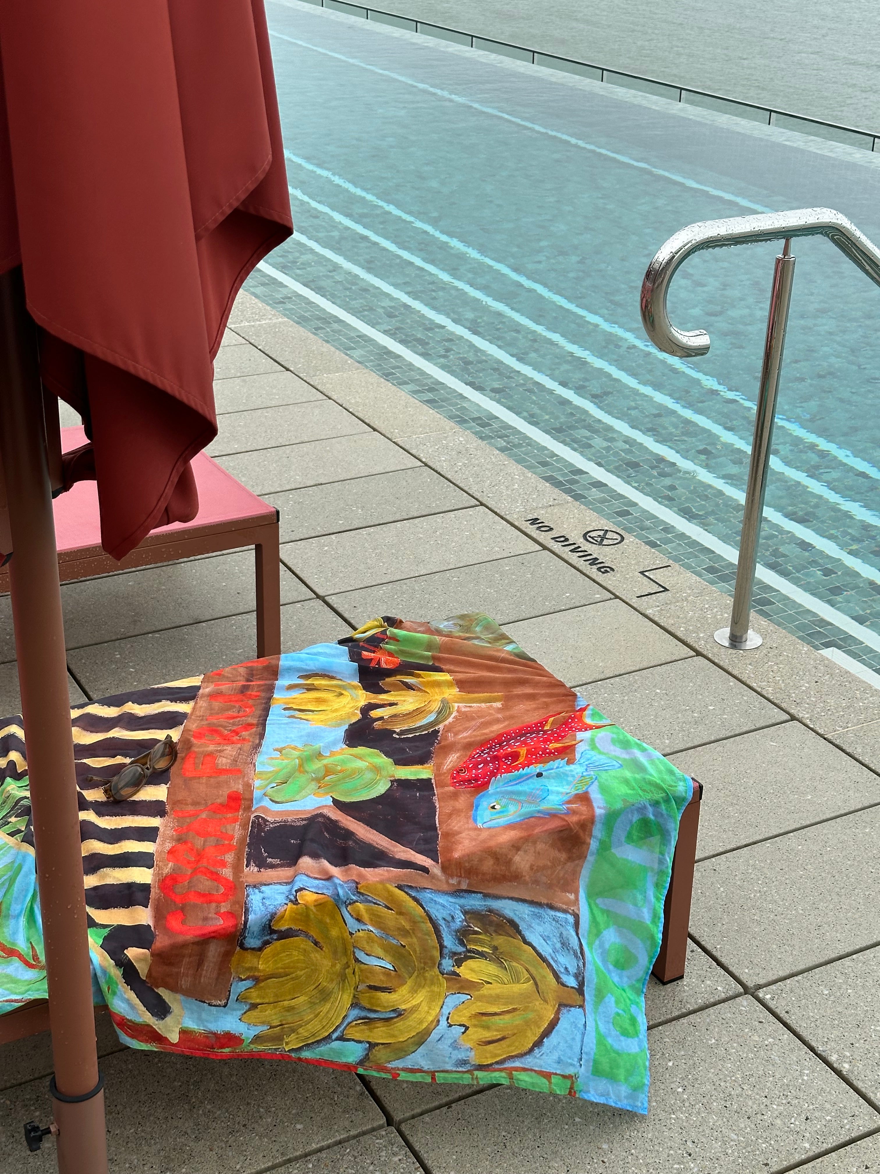The sarongs are printed on soft, 100% lightweight cotton voile, chosen for breathability and ease in hot summers. Designed to move effortlessly from poolside to sunset drinks, this reversible piece offers relaxed, all-day wear — an elevated expression of wearable art.